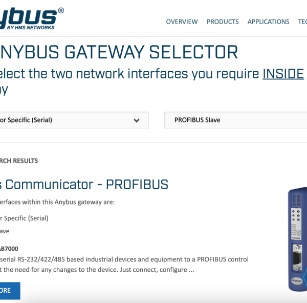 Představte si situaci, kdy potřebujete do stávající sítě profinet připojit čtečku čárového kódu se sériovým rozhraním RS-232. Čtečka funguje tak, že při každém úspěšném naskenování čárového kódu, tento kód odešle na seriový port. Potřebujeme tedy nakonfigurovat Anybus tak, aby čekal na seriovém portu na řetezec dat, jakmile tento řetězec dorazí tak z něj extrahovat data (naskenovaný kód) a poskytnout je na profibus rozhraní. Zároveň by měl nadřízenému systému dát vědět, že je k dispozici nově naskenovaný kód.