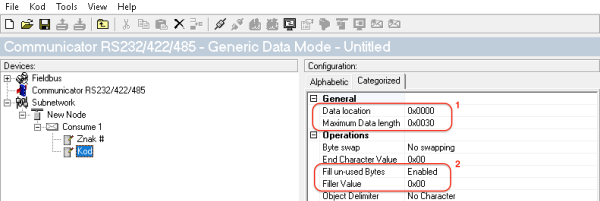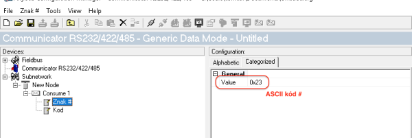 Pro náš případ tedy budeme potřebovat Anybus, který dokáže přenášet data ze sériového portu s obecnným ASCII protokolem na sběrnici profibus, kde bude v roli slave. Pomocí průvodce a zadáním potřebných rozhraní na obou stranách, získáme potřebný model Anybus.