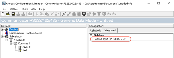 Ke konfiguraci použijeme Anybus configuration manager.