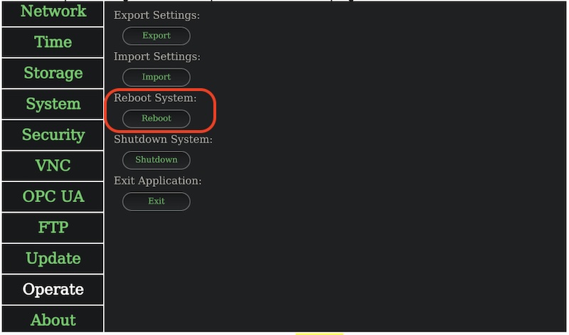 Pokud se nenačte stránka s vizualizací, můžete zkusit zobrazovací panel restartovat tímto způsobem:
